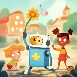 In the bright, futuristic city of Sky Heights, lived Officer Zoom, a brave police robot with shiny b...